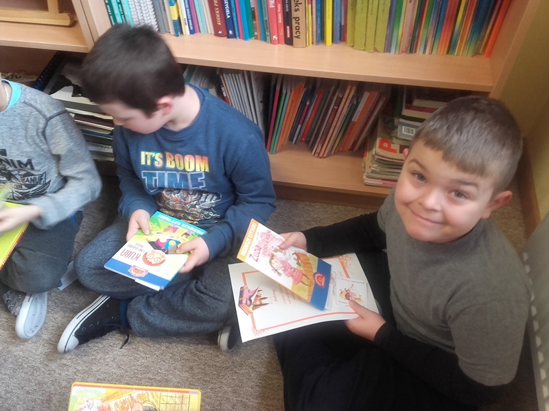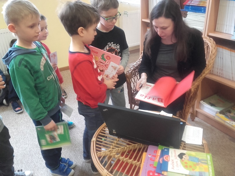 Do grona czytelników szkolnej biblioteki zostali przyjęci uczniowie klasy pierwszej. Dzieci uczestniczyły w specjalnej lekcji bibliotecznej i zapoznały się z regulaminem oraz zasadami korzystania z wypożyczalni. Samodzielnie dokonały wyboru książek do przeczytania w domu. Na pamiątkę pierwszej wizyty w bibliotece otrzymały pamiątkowe zakładki do książek.