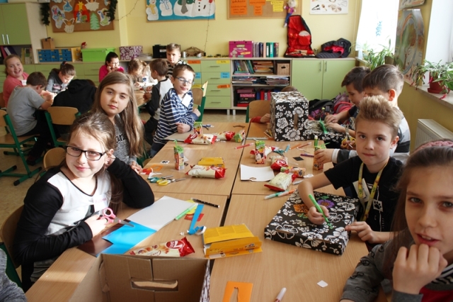 Kolejne czwarte już zajęcia poświęcone były pracy wolontariusza i wspieraniu inicjatyw na rzecz potrzebujących. Spotkanie z wolontariuszkami „Psi Azylek” w Zawadzie oraz ich pupilkiem Kostkiem sprawiło dzieciom wiele radości. Dzieci w pełni zaangażowały się w przygotowanie planu pomocy dla przytuliska w Zawadzie.