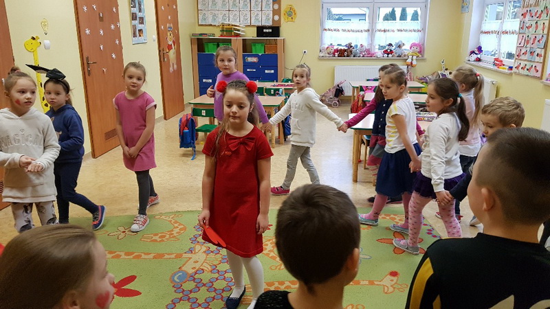 14 lutego uczniowie klasy 0 b wzięli udział w różnych zabawach związanych z walentynkami: szukali drugiej połówki serca, rozwiązywali zagadki dotyczące bohaterów bajek, nie zabrakło również walentynkowych laurek.