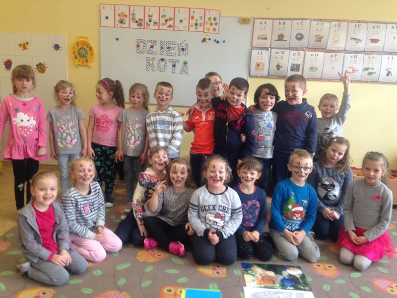 16 lutego w zerówkach uczniowie świętowali Dzień Kota. Wszystkie dzieci zamieniły się  tego dnia w kociaki. Oglądały obrazki różnych ras kotów, rozmawiały o tym jak należy dbać o koty, tańczyły przy muzyce, aktywnie uczestniczyły w zabawie w formie opowieści ruchowej miaucząc, robiąc koci grzbiet, mrucząc i chlipiąc mleczko, a także wysłuchały opowiadania pt. ,,Skąd się wzięły koty?’’ i wiersza S. Jachowicza ,,Chory kotek”. Zerówczaki brały udział w konkursie ,,Zwijanie kłębka wełny” i ,, Zwinny kotek”. Na koniec uczniowie kolorowali kocie akcesoria i odszukiwali różnice na obrazkach. Ten dzień był pełen wrażeń, wszystkie dzieci  wspaniale się bawiły.