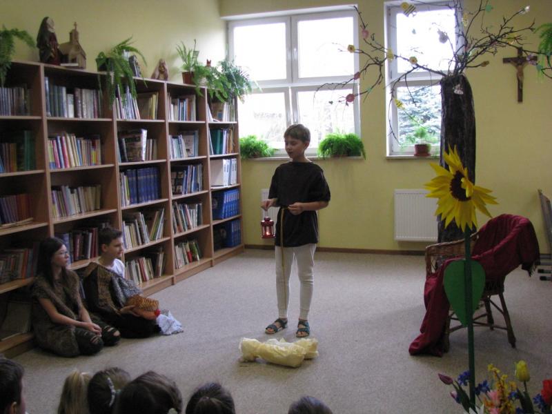 27 lutego 2020r. w bibliotece szkolnej odbyła się inscenizacja trzech scenek z życia bogów i herosów z mitologii greckiej. Uczniowie klasy 5C pod kierunkiem Małgorzaty Jarosz przygotowali epizody z życia Prometeusz i jego wychowanków, Demeter jej córki Kory i historię pewnego jabłka. Spektakl obejrzeli uczniowie klas Ib i IIb pod opieką pani Agaty Bukały i pana Wojciecha Głowackiego.