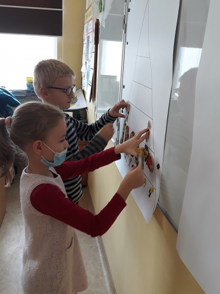 W piątek, 30 października uczniowie klas II a, II c, III a uczestniczyli w zajęciach ,, Zdrowo pakuję – dobrze jem”. To pierwsze z serii zajęć poruszających tematykę zdrowego stylu życia. Dzieci wykonały własną Piramidę Zdrowego Żywienia i Aktywności Fizycznej, a następnie przygotowały przekąski z ciasta orkiszowego.