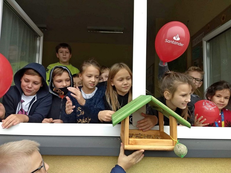 Jeszcze w listopadzie uczniowie klasy 3a wzięli udział w akcji organizowanej przez Santander Bank pod hasłem „Hu, hu, ha, nasza zima nie jest zła!”, związanej z dokarmianiem ptaków. Dzieci otrzymały od Banku Santander karmnik, wraz z zapasem ziaren dla ptaków. Niestety przez czas nauczania zdalnego nie udało się prowadzić akcji. Teraz, po powrocie do szkoły dzieci z 3a kontynuują prowadzenie ptasiej stołówki.