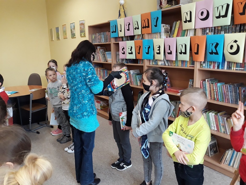 Dnia 01.02.2021r. uczniowie klasy 1 b uczestniczyli w zajęciach bibliotecznych. Zapoznali się z zasadami korzystania z zasobów biblioteki, zachowania się, sposobów wypożyczania a także dbałości o wypożyczone pozycje . Następnie zostali pasowani na wzorowego czytelnika, co dało im wiele radości i satysfakcji, że są pełnoprawnymi czytelnikami.