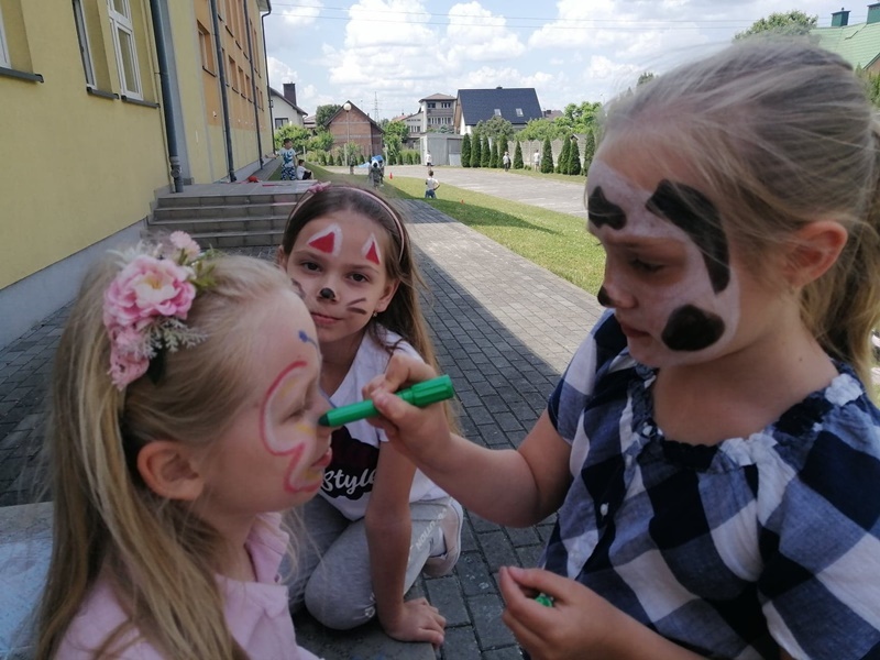 Po lekcjach w ramach naszej świetlicy można korzystać z uroków pięknej pogody. W tym tygodniu dzieci grały w piłkę nożną, badmintona, chodziły na szczudłach albo malowały twarze. A uczniowie zmęczeni zdobywaniem wiedzy, wybrali malowanie kredą i relaks na kocykach w otoczeniu przygody.