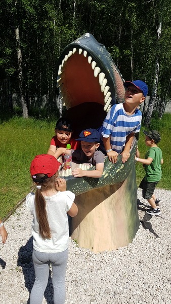 Dzieci z grupy “0” w dniu 15. 06.2021 r., uczestniczyły w wycieczce do Kompleksu Turystycznego Brzezówka. Celem naszego wyjazdu było rozwijanie zainteresowań prehistorycznymi gadami – dinozaurami, kształcenie umiejętności zachowania się podczas wycieczek oraz popularyzowanie aktywnego sposobu spędzania wolnego czasu. Przygodę rozpoczęliśmy od zwiedzania ,,Parku Historycznego”. Następnie po przejściu parku linowego i krótkiej przerwie dzieci udały się do Parku Zabaw, na którym znajdowały się różnorakie atrakcje tj. basen z łódeczkami, karuzele, zjeżdżalnie, trampoliny i wiele innych. Nasi najmłodsi byli zachwyceni! Wycieczka w prehistorię była niezapomnianym przeżyciem i dostarczyła wszystkim wielu wrażeń.