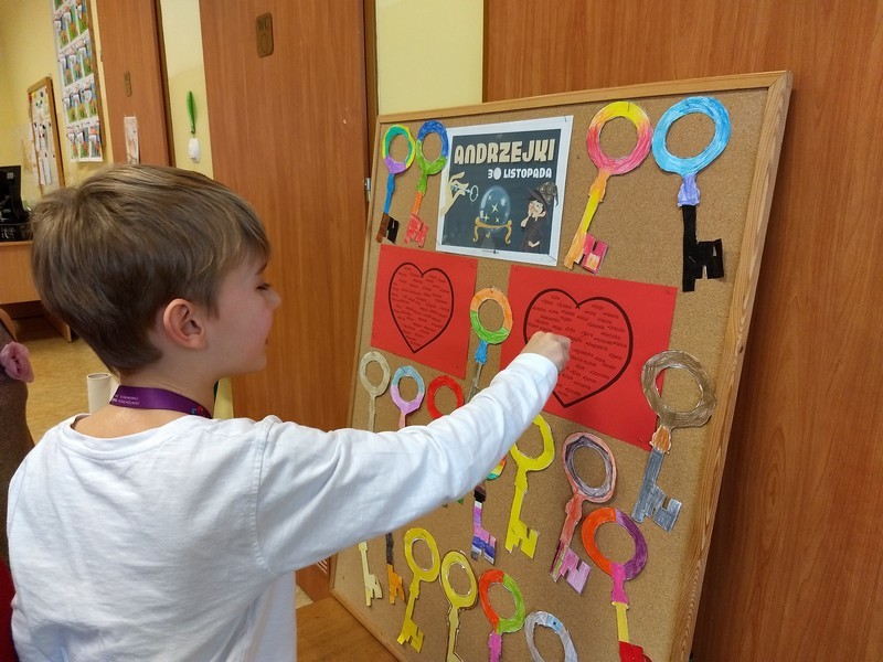 Niegdyś wróżby andrzejkowe miały charakter wyłącznie matrymonialny i przeznaczone były tylko dla niezamężnych dziewcząt. Początkowo andrzejki traktowano bardzo poważnie, a wróżby odprawiano tylko indywidualnie, w odosobnieniu, zaś współcześnie przekształciły się w niezobowiązującą zabawę gromadzącą młodzież obojga płci. [źródło] . Zapraszamy do obejrzenia galerii z klasowych Andrzejek.