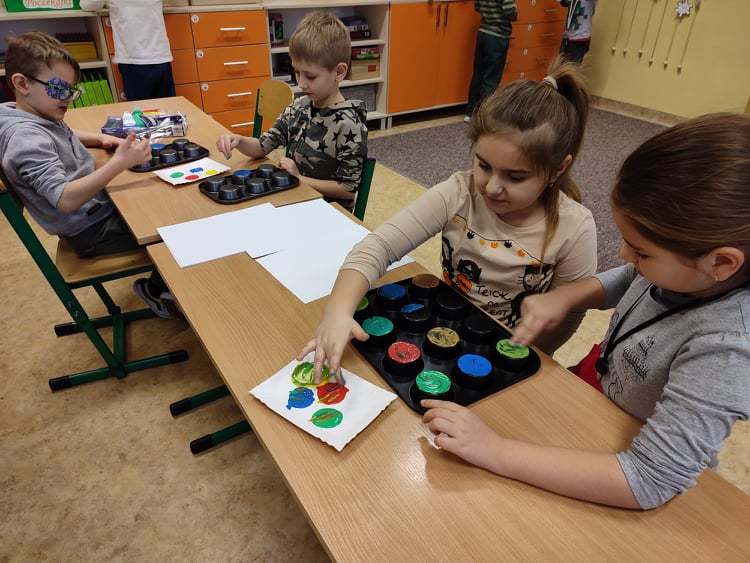 W ostatnim tygodniu stycznia uczniowie z klasy 1b wykonali kolejną pracę w ramach projektu Kreatywne Prace Plastyczne. Tym razem dzieci zrobiły gazetowe bałwanki na drukowanym foremką tle. Zaangażowanie i skupienie w czasie pracy zaprocentowało ogromną satysfakcją i piękny m efektem!