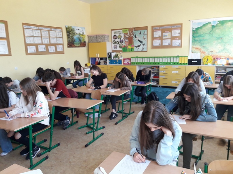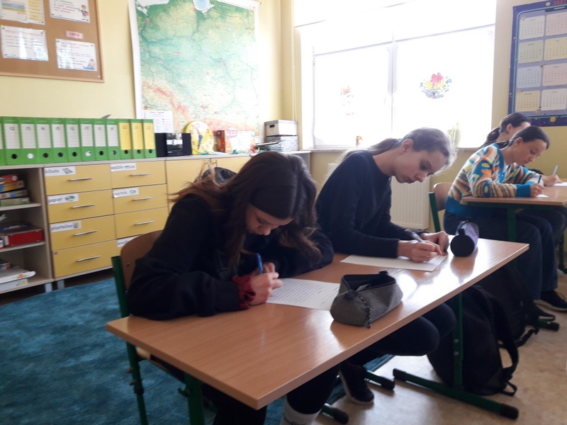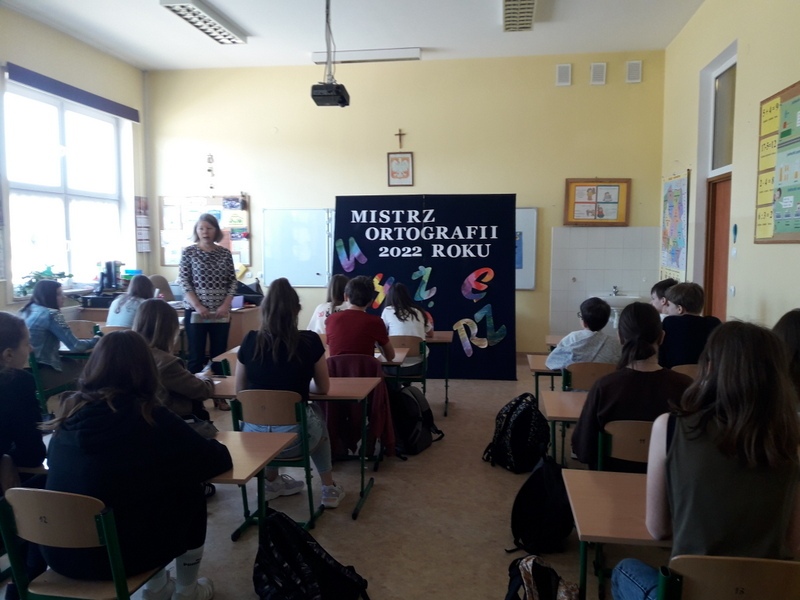Nauka ortografii jest piętą achillesową wielu uczniów.Aby urozmaicić zadanie pracy nad nabywaniem umiejętności nawyku dbania o czystość i piękno języka ojczystego zespół nauczycieli języka polskiego zorganizował kolejną edycję konkursu o tytuł ,, Mistrza Ortografii”. Konkurs składał się z dwóch etapów. W kasowych eliminacjach nauczyciele wyłonili po czterech najlepszych znawców ortografii.