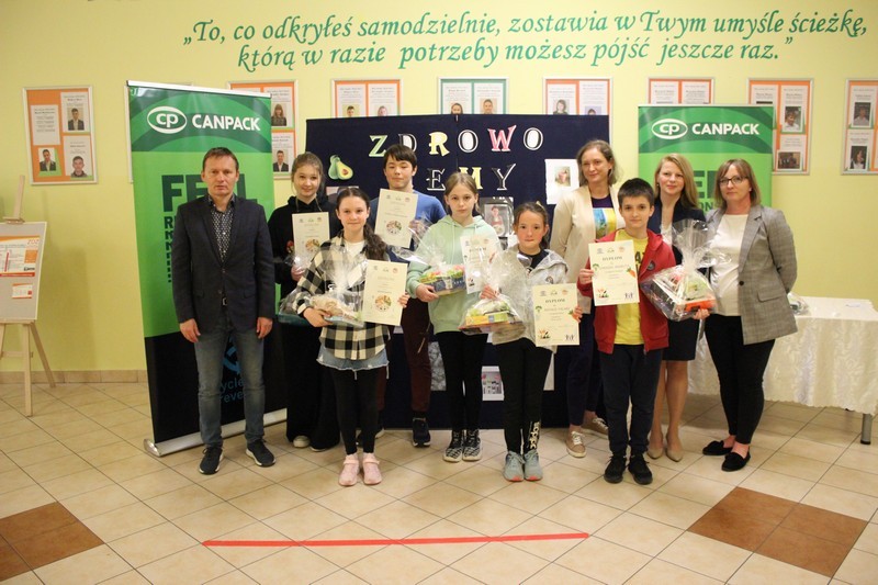 To już ostatnie spotkanie w ramach projektu ,, Zdrowo pakuję – dobrze jem”. W trzeciej części projektu to uczniowie wykazali się wiedzą o zdrowym żywieniu, przygotowując zdrowe przekąski, dania i desery. W konkursie wyróżniono ośmioro uczniów z najciekawszymi pracami. Pamiątkowe dyplomy i nagrody zostały wręczone przez pana wicedyrektora Piotra Mazura oraz panią Małgorzatę Kozioł – przedstawiciela firmy Can Pack. Dziękujemy uczestnikom za aktywny udział w zajęciach i konkursie. Mamy nadzieję, że aktywny i zdrowy styl życia będzie towarzyszył wam na co dzień.
