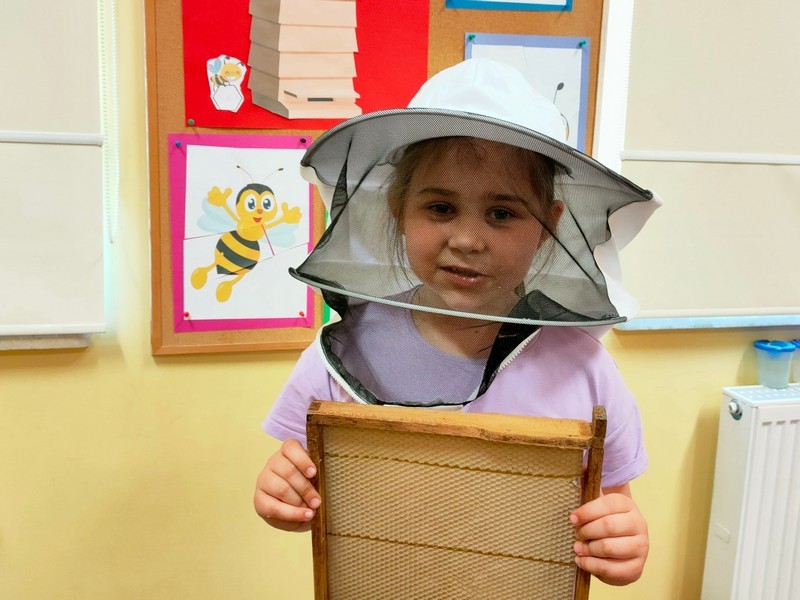 W klasie 1a odbył się cykl zajęć pod hasłem „Poznajemy pszczółki”. Uczestnikami byli chętni uczniowie tej klasy, a zajęcia zostały zrealizowane dzięki szkolnemu Projektowi Ekologiczno – Przyrodniczemu „Niech bije zielone serce Ziemi”. Podczas zajęć dzieci poznały budowę pszczół, dowiedziały się ich życiu i zwyczajach. Wykonywały prace plastyczne, uczestniczyły w zabawach muzycznych i ruchowych. Dużą atrakcją była dla dzieci degustacja różnych rodzajów miodu. Wiele ciekawostek o pracy pszczelarza i produkcji miodu przekazał swoim kolegom Wiktor, który przyniósł swój strój do pracy w pasiece. Wszystkie dzieci oczywiście przymierzały strój, czując się przez chwilę jak prawdziwi pszczelarze.