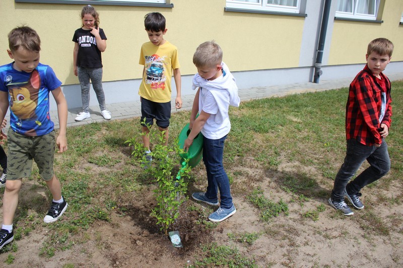Podczas ostatnich zajęć, które odbywały się w ramach projektu ,, Jestem Eko-Logiczny II” spotkali się uczniowie klas Ia, Ib, IIa, IIb. Wszyscy zgodnie współpracowali przy sadzeniu roślin na terenie naszej szkoły oraz zobowiązali się do dalszej ich pielęgnacji. Dzięki tym działaniom teren naszej szkoły będą zdobiły w przyszłości piękne kompozycje kwiatowe, a mali ogrodnicy będą obserwować, jak krzewy i kwiaty rosną wraz z nimi. Krzewy, rośliny ozdobne oraz akcesoria ogrodnicze zakupione zostały dzięki finansowemu wsparciu firmy Can-Pack. To ostatnie spotkanie w tym roku szkolnym . Wszystkim uczestnikom życzymy udanych wakacji. Niech podczas wakacyjnego odpoczynku nie opuszcza Was troska o środowisko. Do zobaczenia za rok.