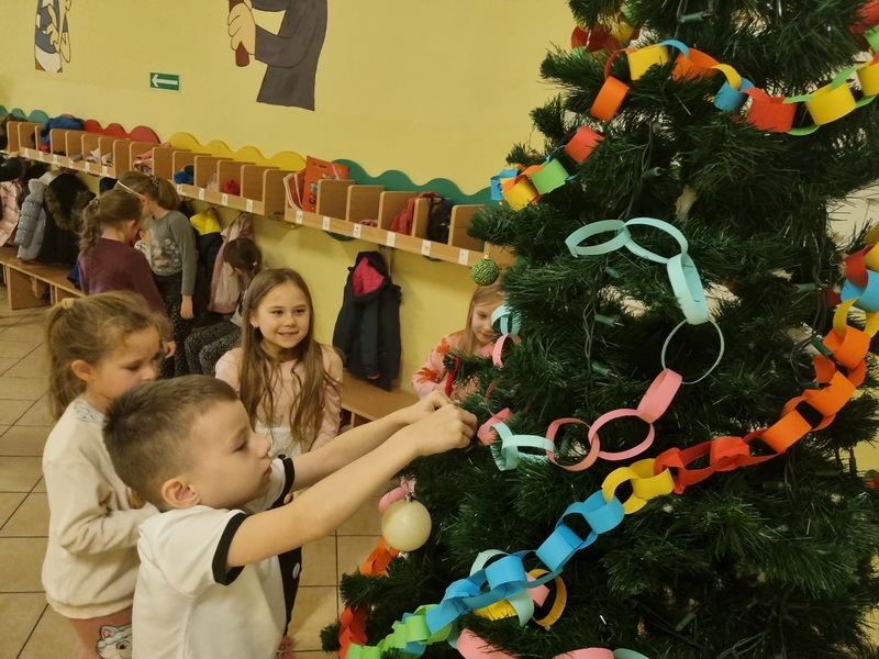 W ostatnim tygodniu przed świętami zrealizowaliśmy kolejny moduł Programu Edukacyjnego Natalia i Antek w Świecie Wielkiej Matematyki. Tym razem dzieci zastanawiały się, czy matematyka przydaje się podczas świątecznych przygotowań. Swoje pomysły porównały z przykładami z filmu. Okazało się, że w wielu sytuacjach jak choćby wybór choinki, długość łańcucha, pakowanie prezentów lub planowanie budżetu na zakupy nie może odbyć się bez znajomości podstawowych pojęć matematycznych. Później wykonaliśmy zadanie praktyczne polegające na zapakowaniu prezentów. Przy okazji dzieci opowiedziały o tym co jest istotne w przygotowaniu upominków dla bliskich, a także zwróciły uwagę, że równie ważne jak otrzymywanie jest obdarowywanie kogoś prezentami.
